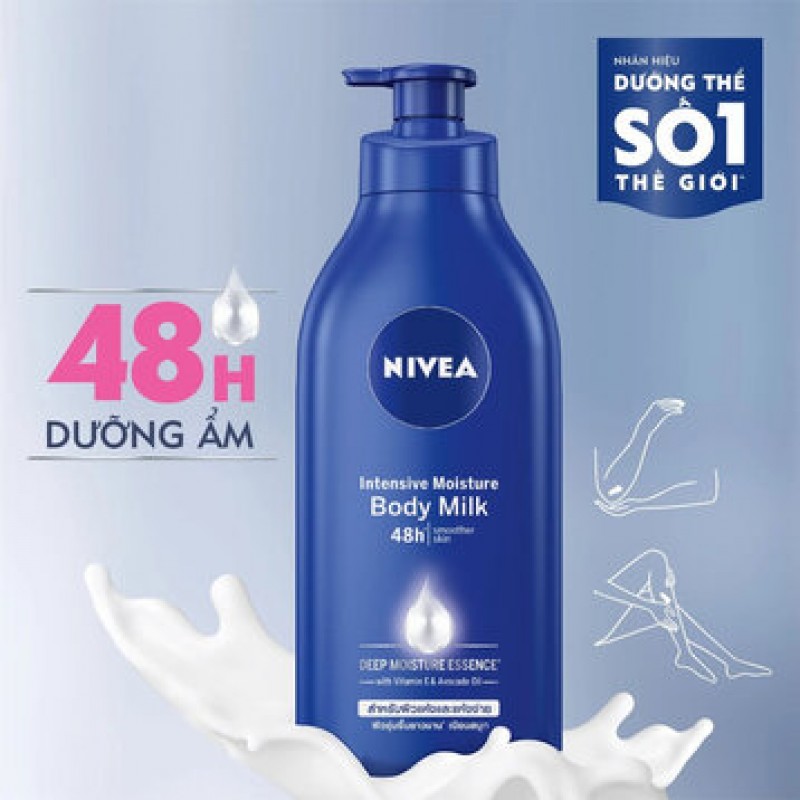Sữa Dưỡng Thể Nivea Dưỡng Ẩm Da Chuyên Sâu là dòng dưỡng ẩm toàn thân đến từ thương hiệu mỹ phẩm Nivea thuộc tập đoàn Beiersdorf của Đức, với công thức giữ ẩm sâu vào ban đêm giúp duy trì độ ẩm trên da suốt 24 giờ đồng hồ. Sản phẩm có thành phần bổ sung hơn 50 lần vitamin E dưỡng ẩm chuyên sâu, ngăn cản sự mất độ ẩm trên da mang đến làn da ẩm mịn, mượt mà.