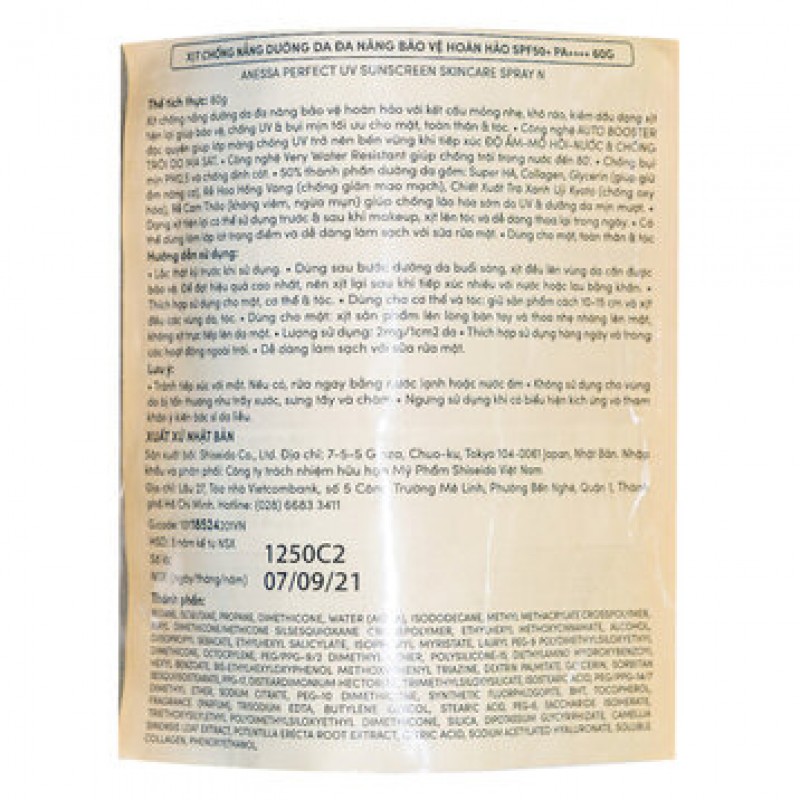 | Tên sản phẩm | Xịt Chống Nắng Anessa Dưỡng Da Đa Năng 60g (Mẫu Mới 2022) |